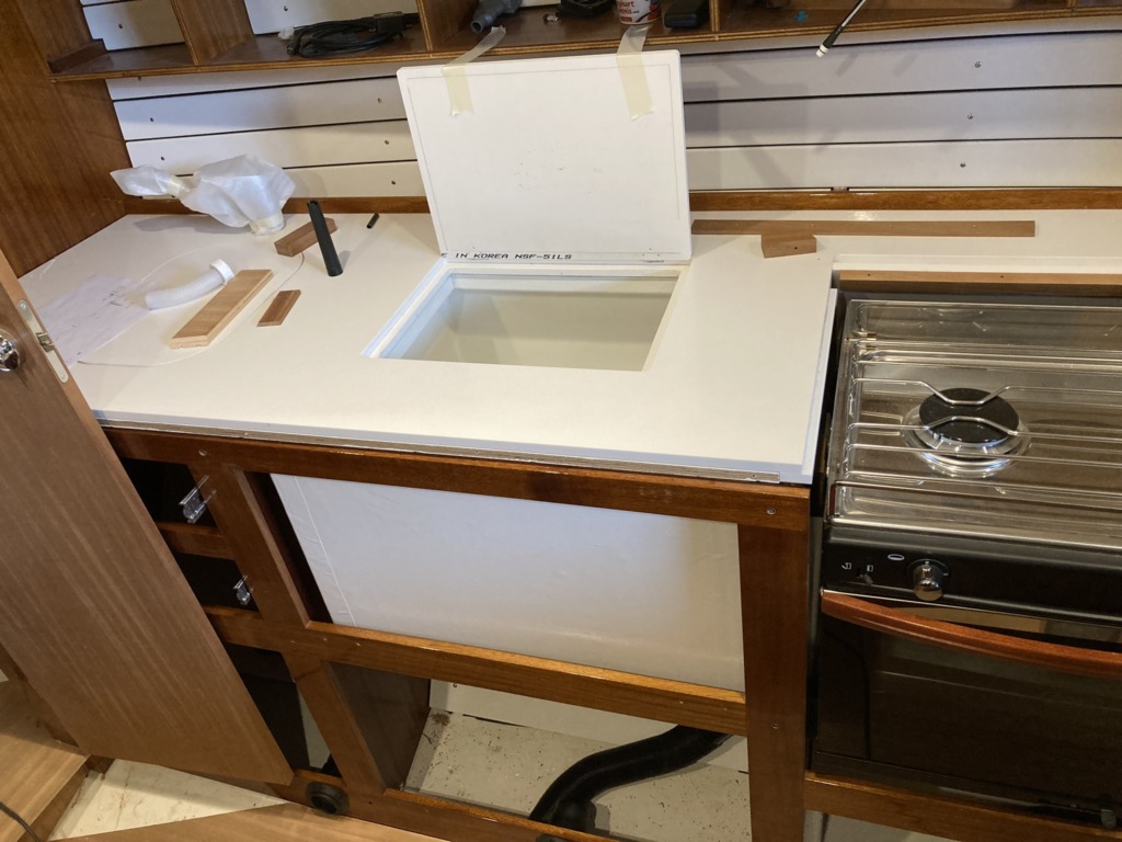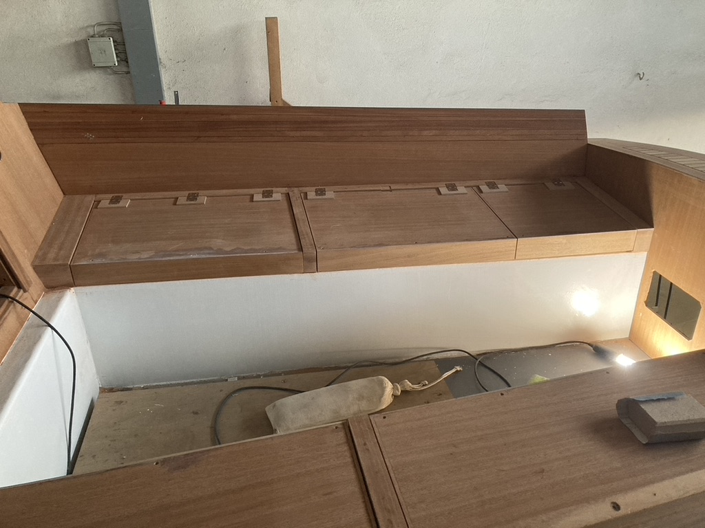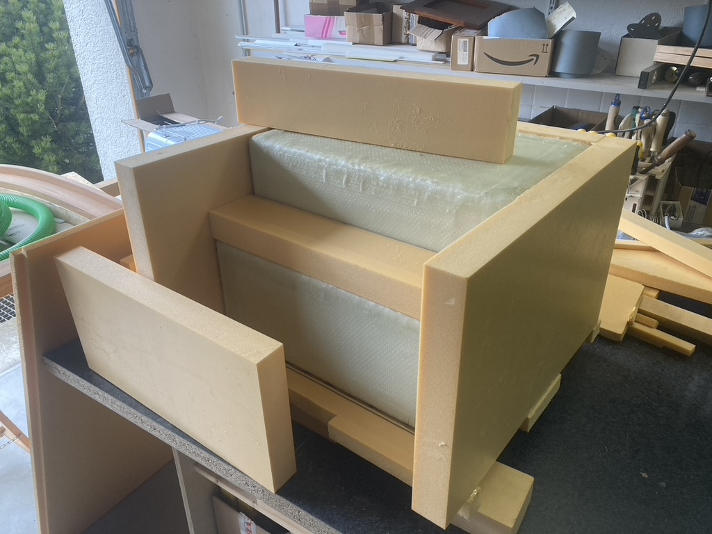Nachdem jetzt das letzte Holz für die Restarbeiten gekommen ist ging es mit den Backskistendeckel weiter und die Laibungen sind soweit fertig, die Vertiefungen für die Scharniere gefräst und das ganze auch wieder angeschraubt.